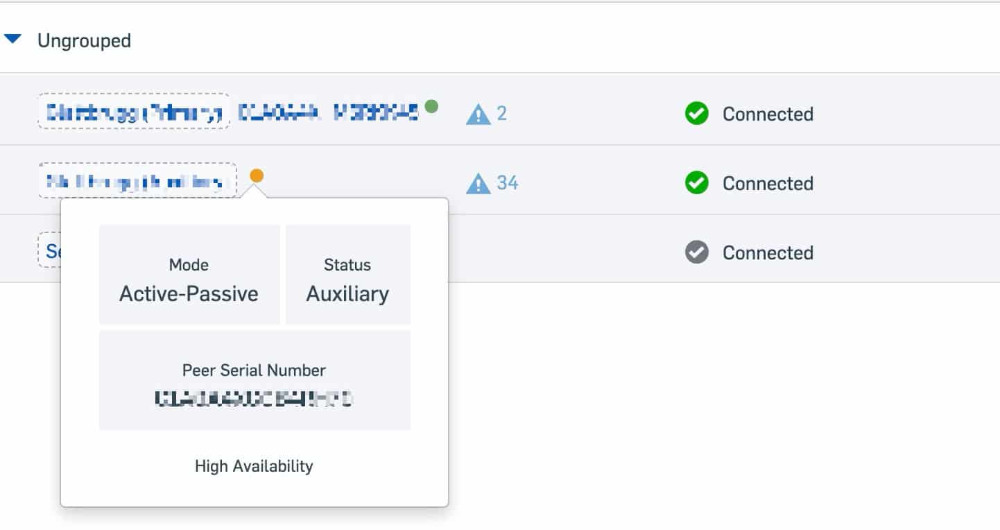 I cluster HA non vengono più mostrati come online e offline, ma ora è facile vedere quali firewall sono stati configurati per formare un cluster.