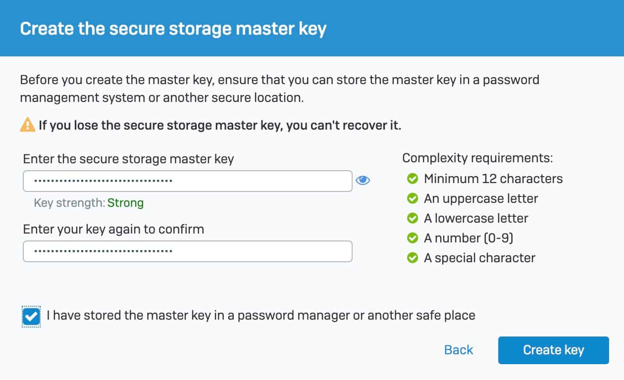 Ora, con v18 MR3, è disponibile la Secure Storage Master Key. Questa chiave può essere creata solo con l’utente admin. Non funziona con un altro utente che disponga di diritti amministrativi. Definendo questa nuova chiave, informazioni importanti vengono cifrate ulteriormente. Chi vuole sapere esattamente che cosa succede qui può leggerlo nel documento Secure Storage.
