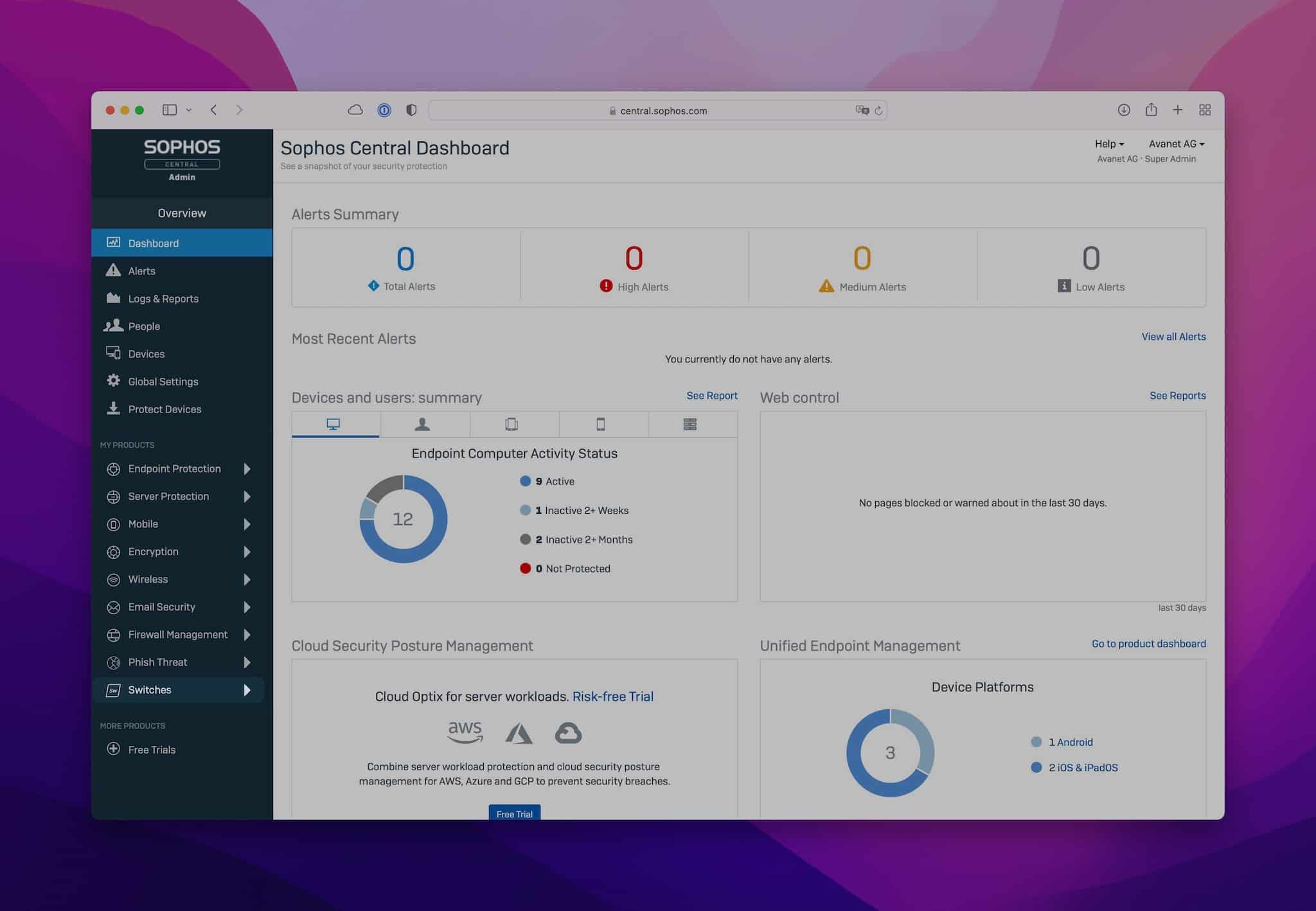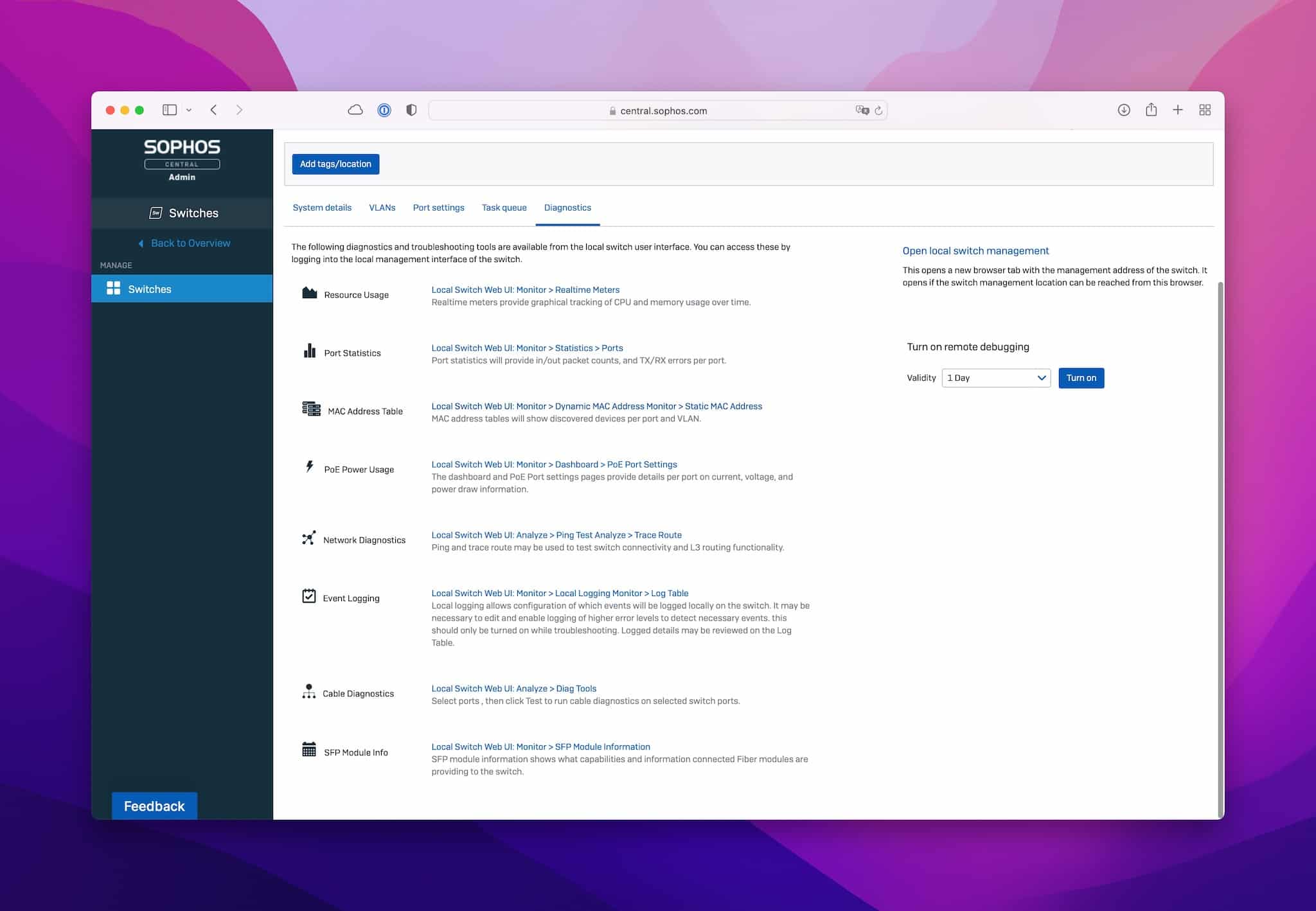 - Sophos Central-beheer – De Sophos Switch kan via Sophos Central worden beheerd.