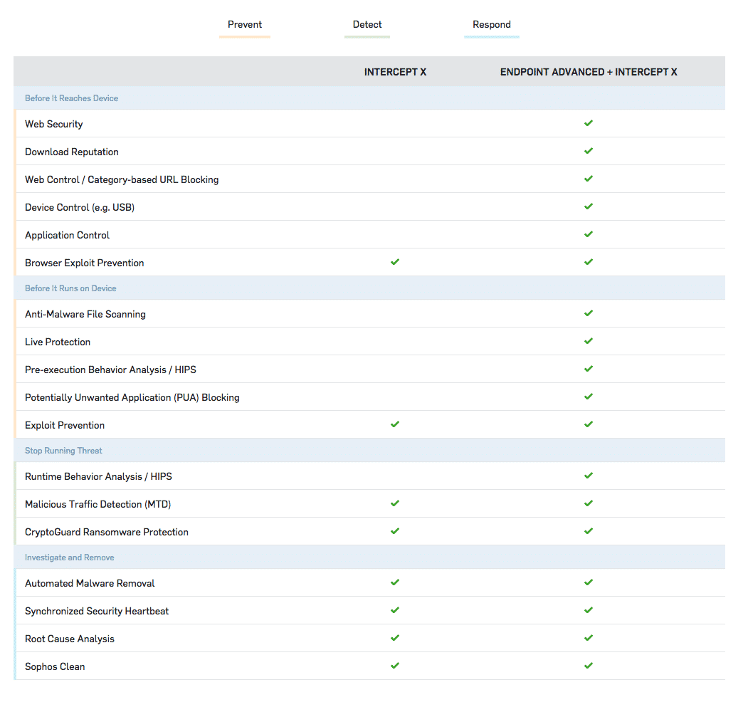 Sophos Intercept X może być oczywiście używany także wspólnie z Sophos Central Endpoint Standard (NOWOŚĆ!) lub Advanced i stanowić wydajną, dodatkową warstwę zabezpieczeń.