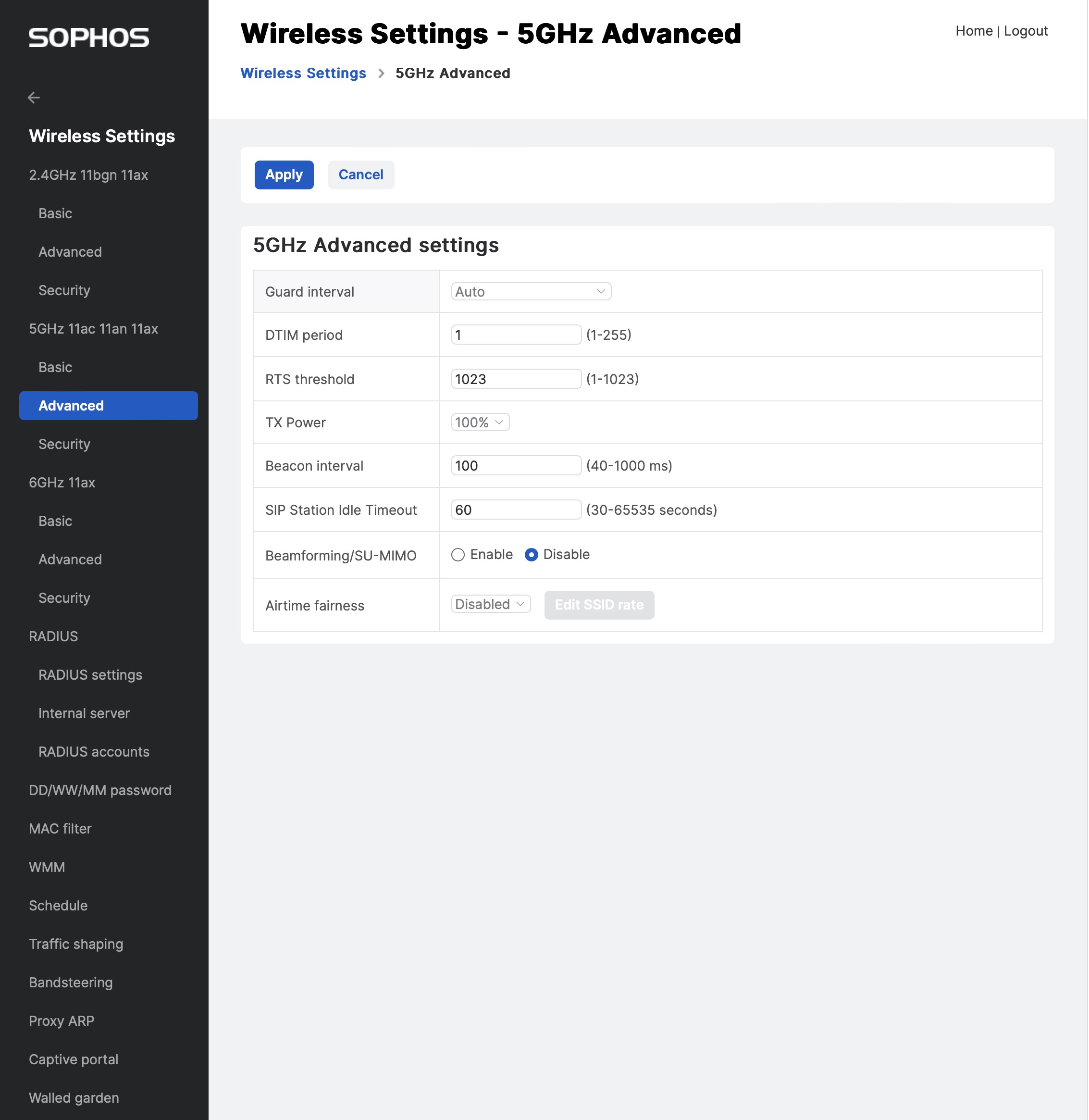 Istnieją tylko dwa punkty dostępowe Sophos (wewnętrzne) z Wi-Fi 6.
