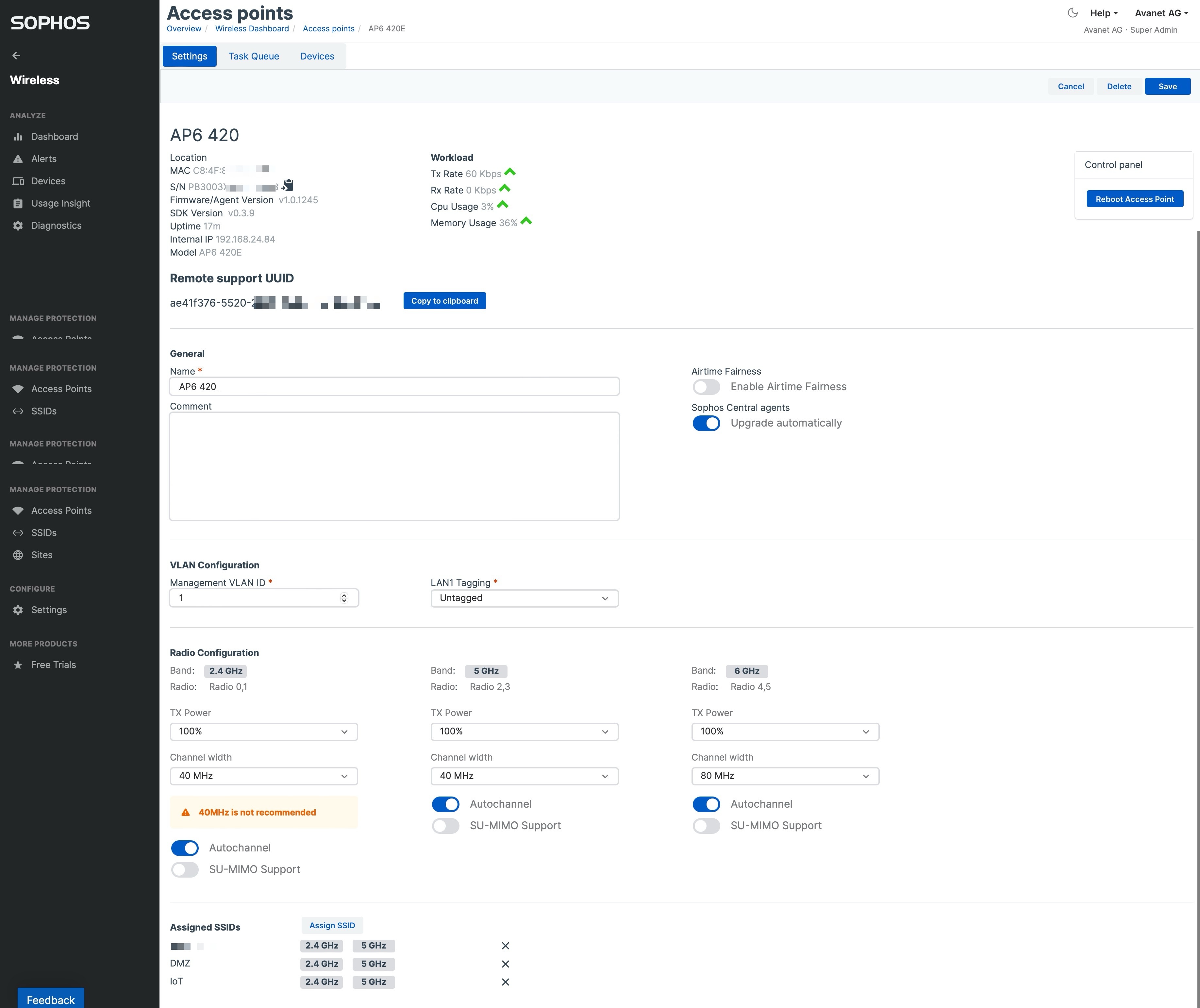 Zarządzanie bezprzewodowe Sophos AP6 przez Central, w przeciwieństwie do serii AP (End of Life koniec 2023 r.) i serii APX, nie jest już bezpłatne. Podobnie jak w przypadku przełączników istnieje tutaj subskrypcja Wsparcia i Usług.