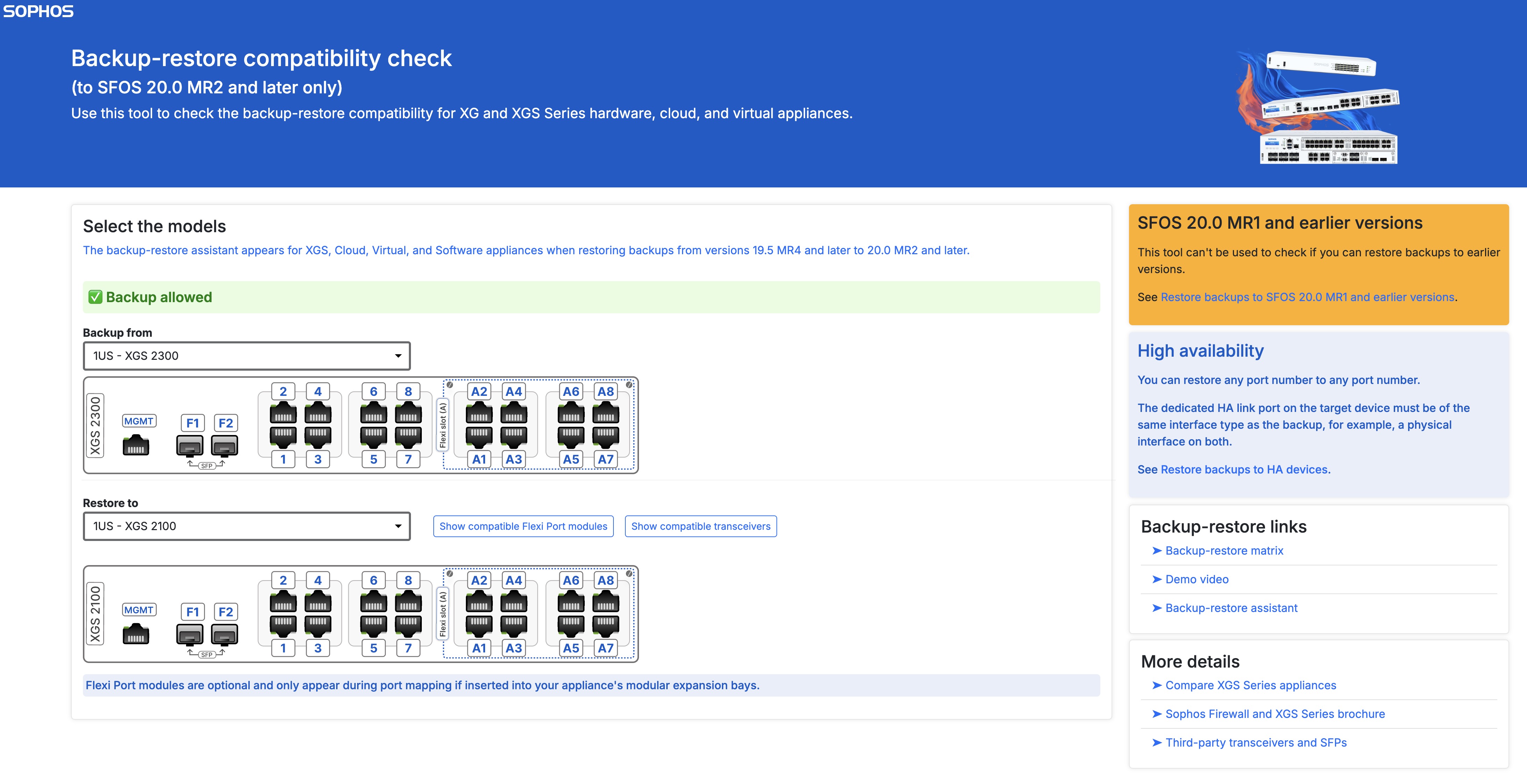 A transição de um Appliance XG Firewall para um XGS Firewall é descomplicada. Ao contrário da mudança de UTM para SFOS, não é necessária uma reinstalação completa aqui. Em vez disso, pode importar um backup da sua XG Firewall atual diretamente para a nova XGS Firewall. Isso pressupõe, naturalmente, que os modelos são compatíveis. Com este simples passo, as configurações e definições existentes são transferidas sem problemas.