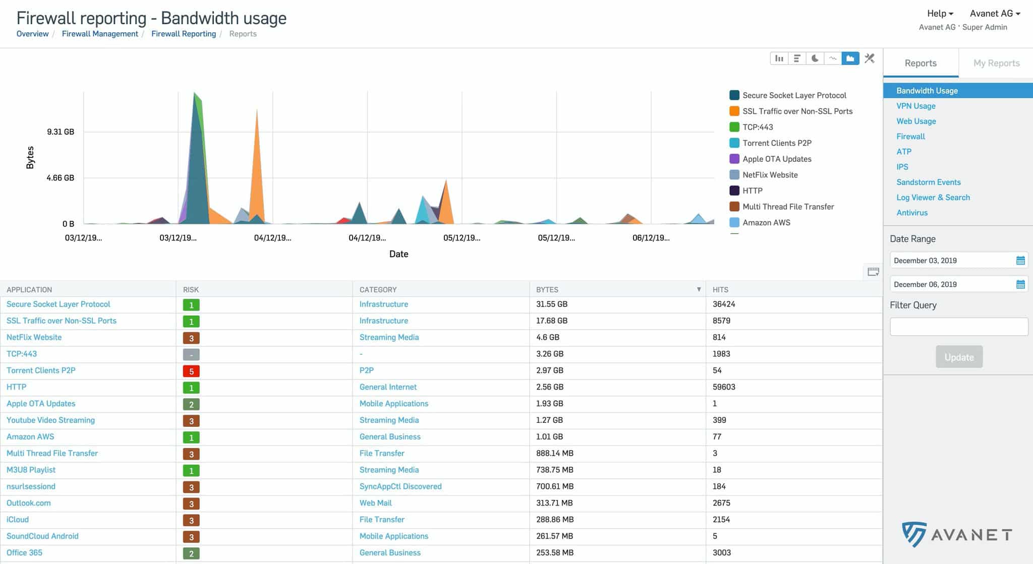 Ao activar o reporting no firewall, os dados de log são enviados para o Sophos Central. Com base nesses dados, podem ser gerados relatórios esclarecedores.
