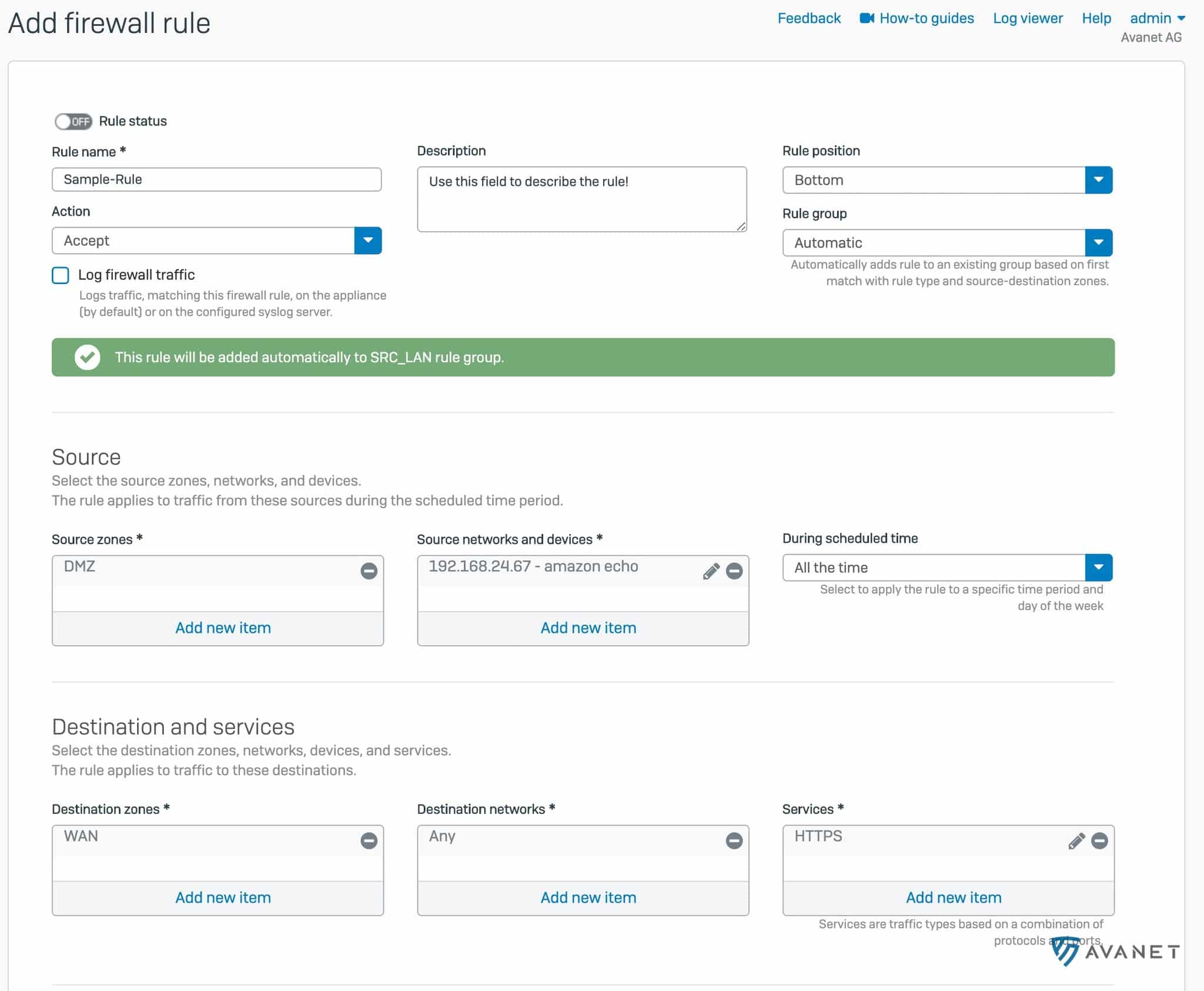 Dessutom går det nu att definiera undantag direkt i brandväggsreglerna. Detta hjälper till att hålla regelverkets omfattning nere och undvika onödiga extra regler.