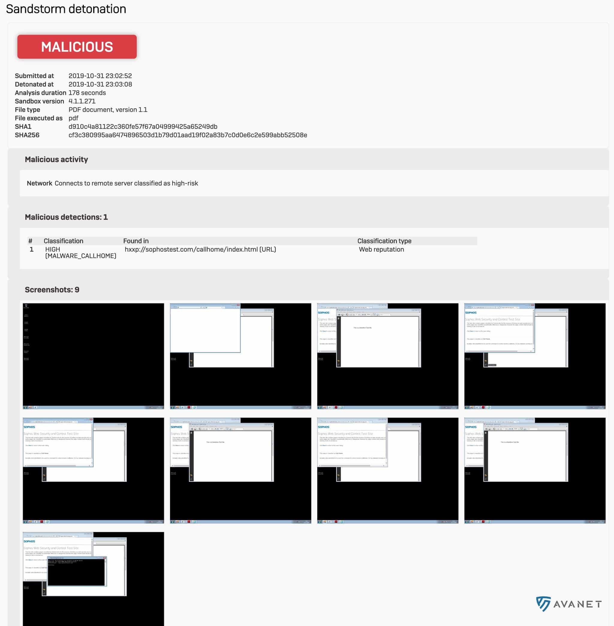 Precis som i EDR genereras en detaljerad analysrapport. I SFOS v18 EAP2 kan en sådan rapport exempelvis se ut så här: